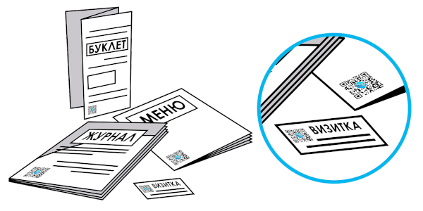 QR code и так используют почти на всех видах полиграфии: упаковка, этикетка, визитки, буклеты, наружная реклама, журналы и так далее.